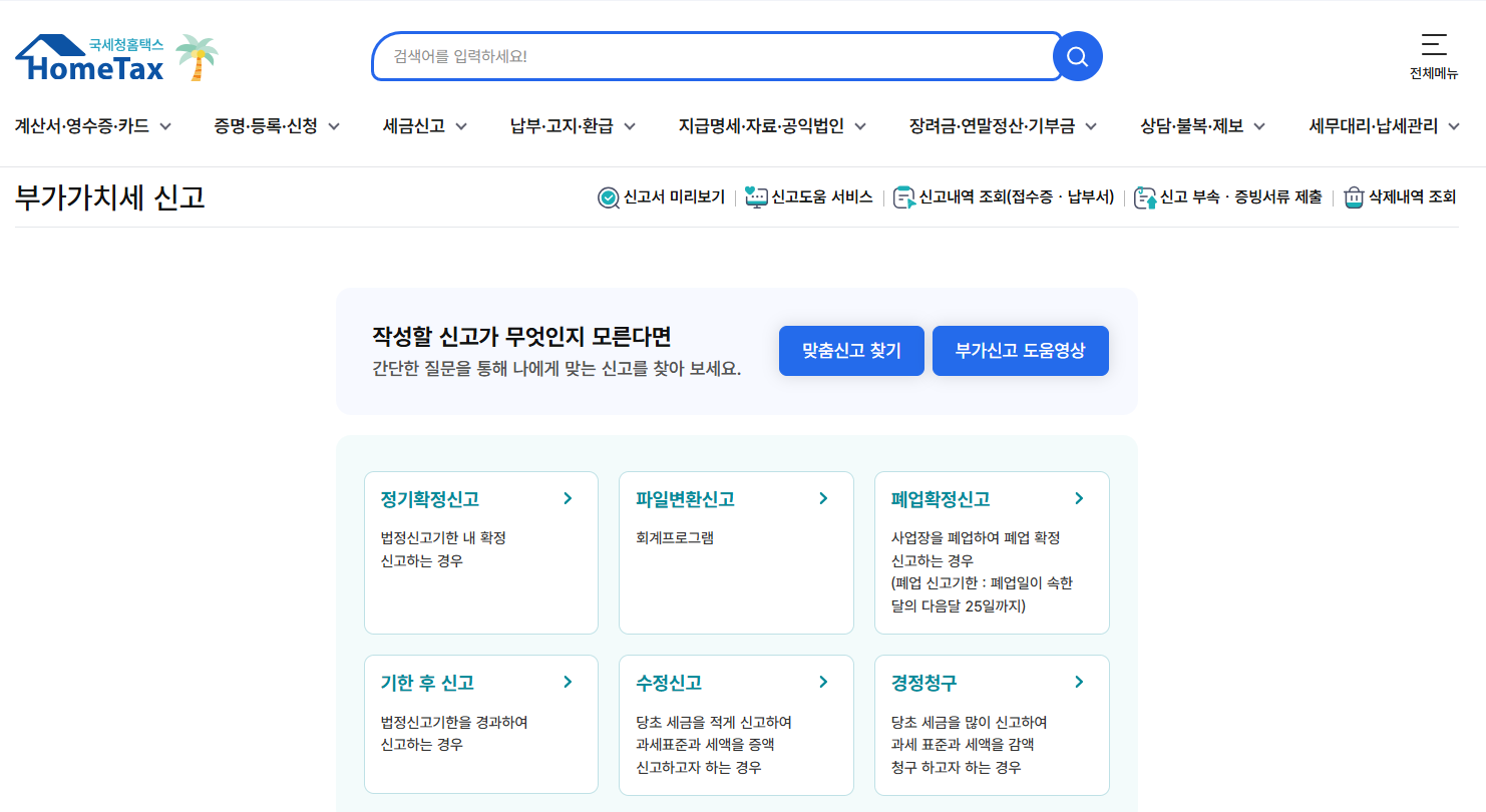 | 2단계 | ‘부가가치세 신고’ 메뉴 선택 |